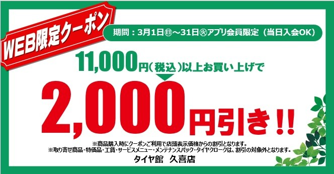 こちらのクーポン券は、タイヤ館 久喜のみ有効となります。