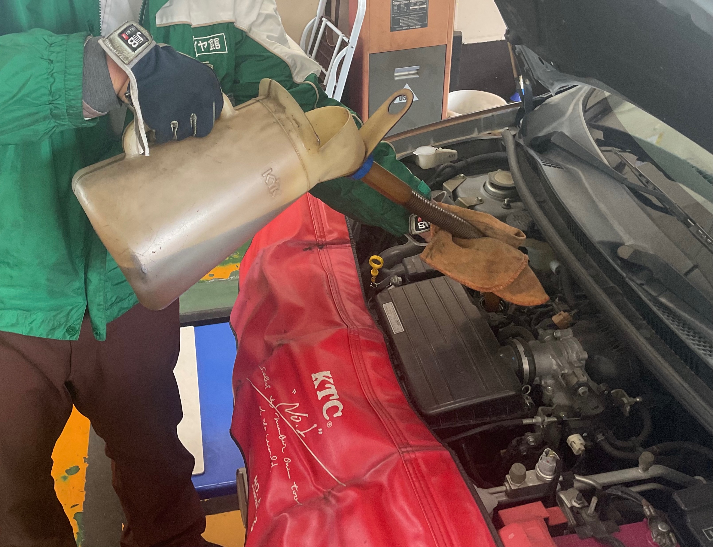 新しいオイルを注入したら、一度エンジンオイルを循環させ、