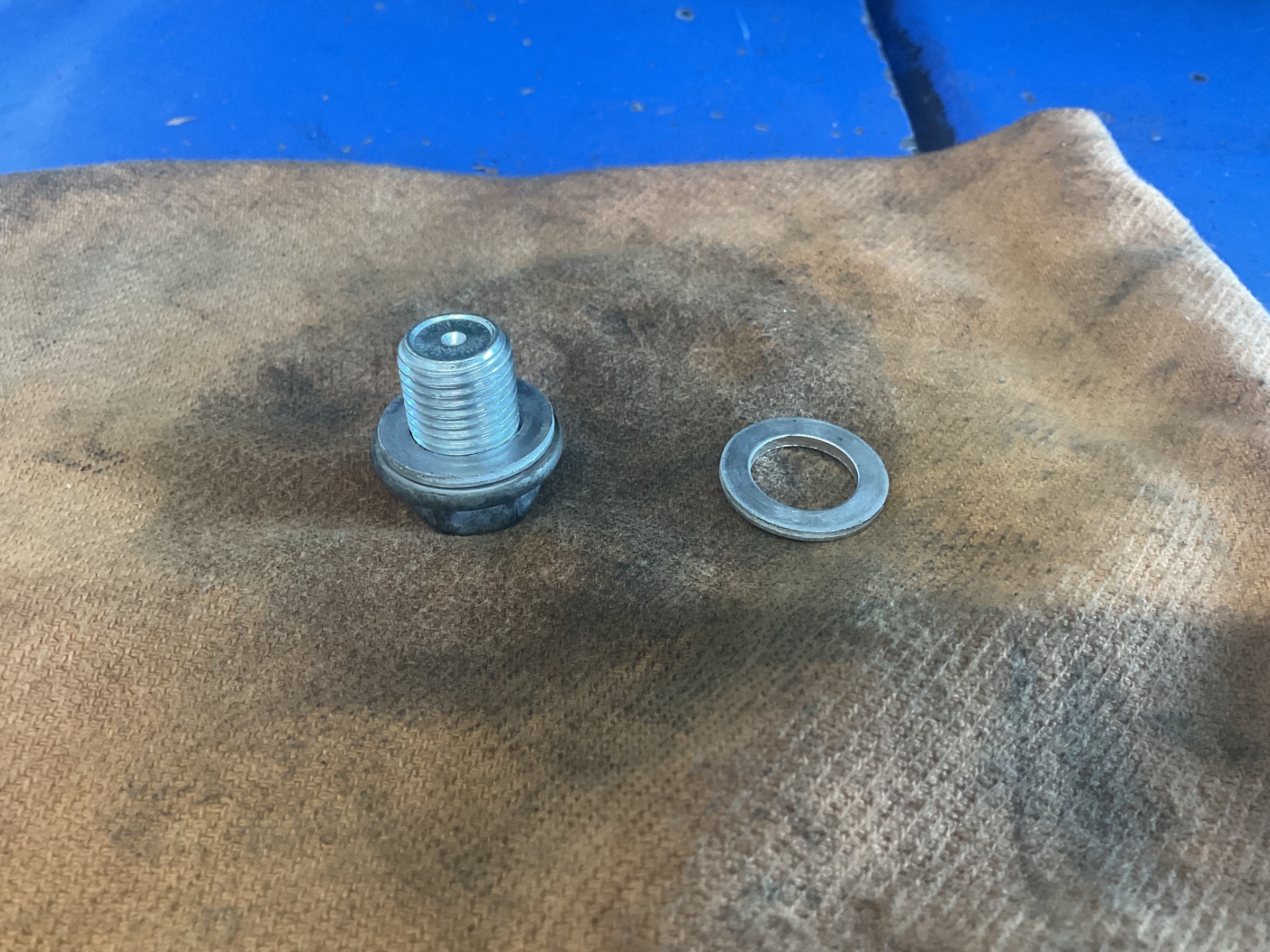 オイルを抜いている間に、ドレンボルトのパッキンを新品に交換します。