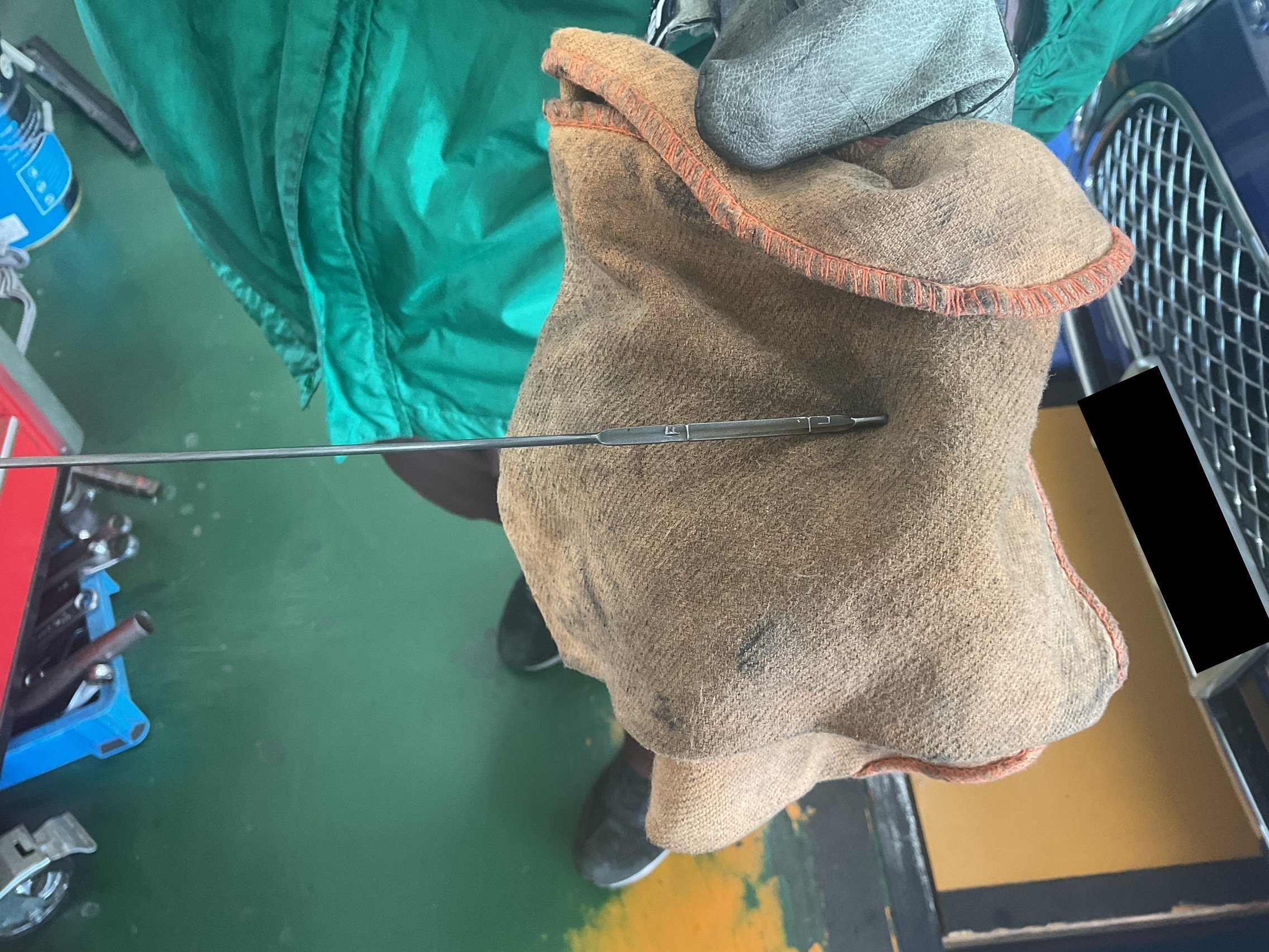 最後にオイルレベルゲージを使い、量の確認を行います。