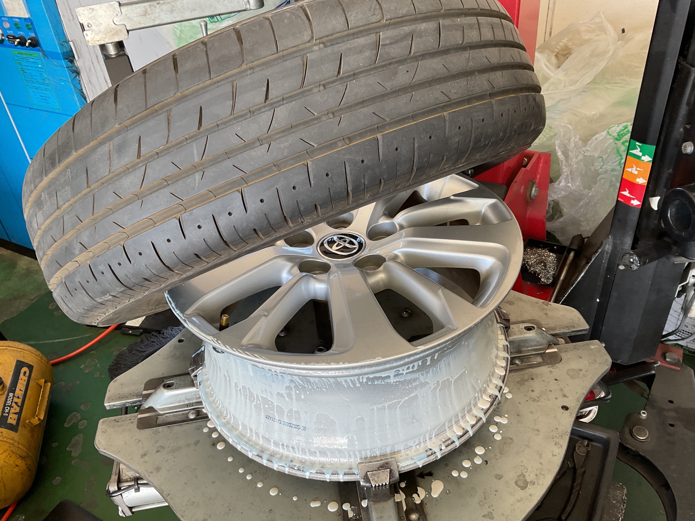 今回はパンク修理剤で空気漏れを止めてから来店頂きましたので、