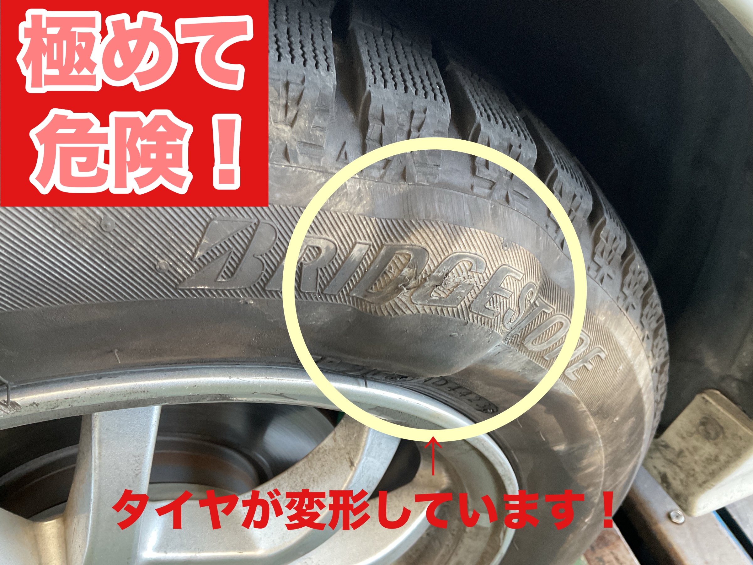 これは衝突の衝撃でタイヤの中身に大きなダメージが入った証拠です。