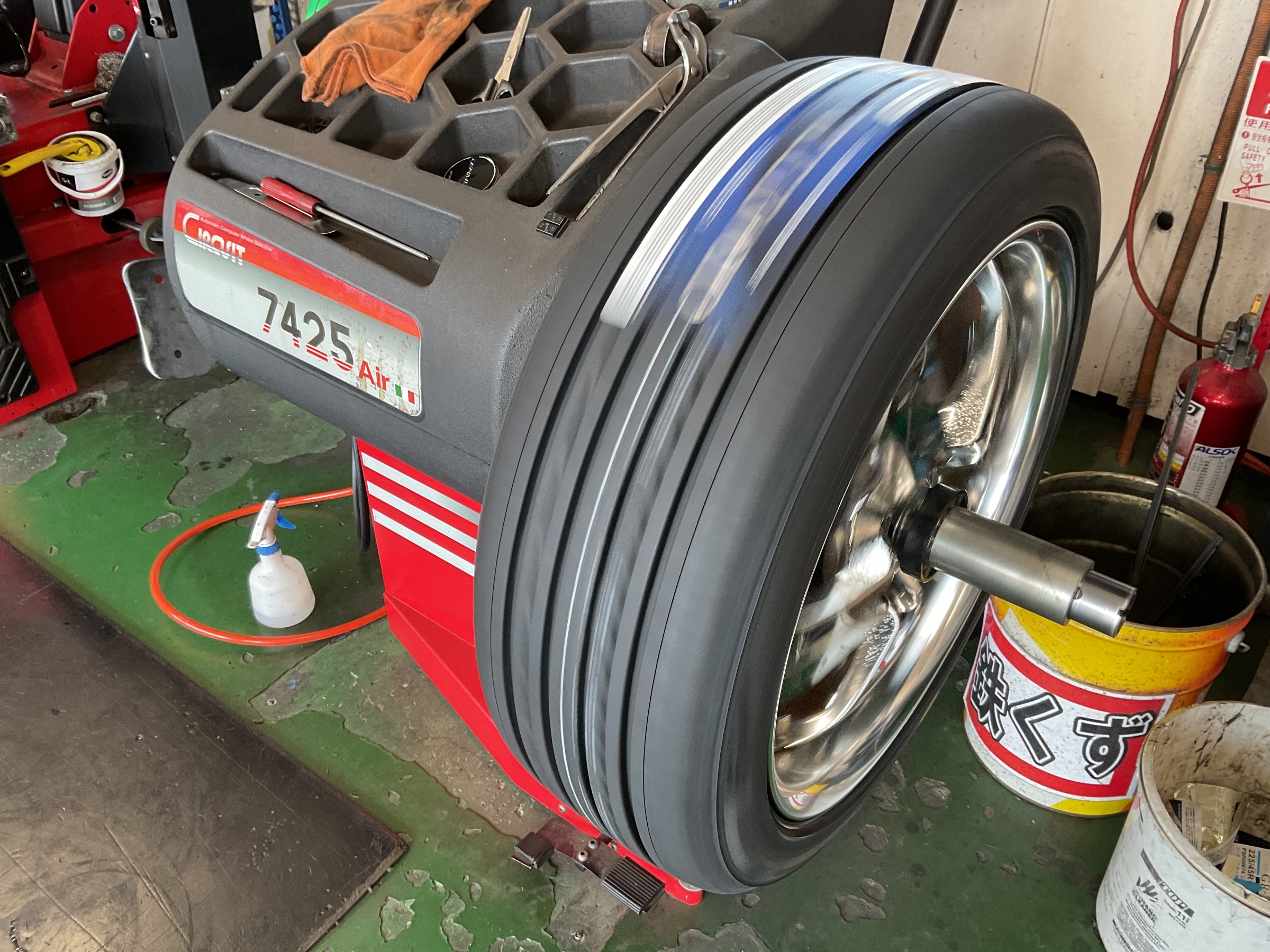 バランス調整とは、空気を充填したタイヤ・ホイールを専用の機械に取り付けて回転させ計測し、