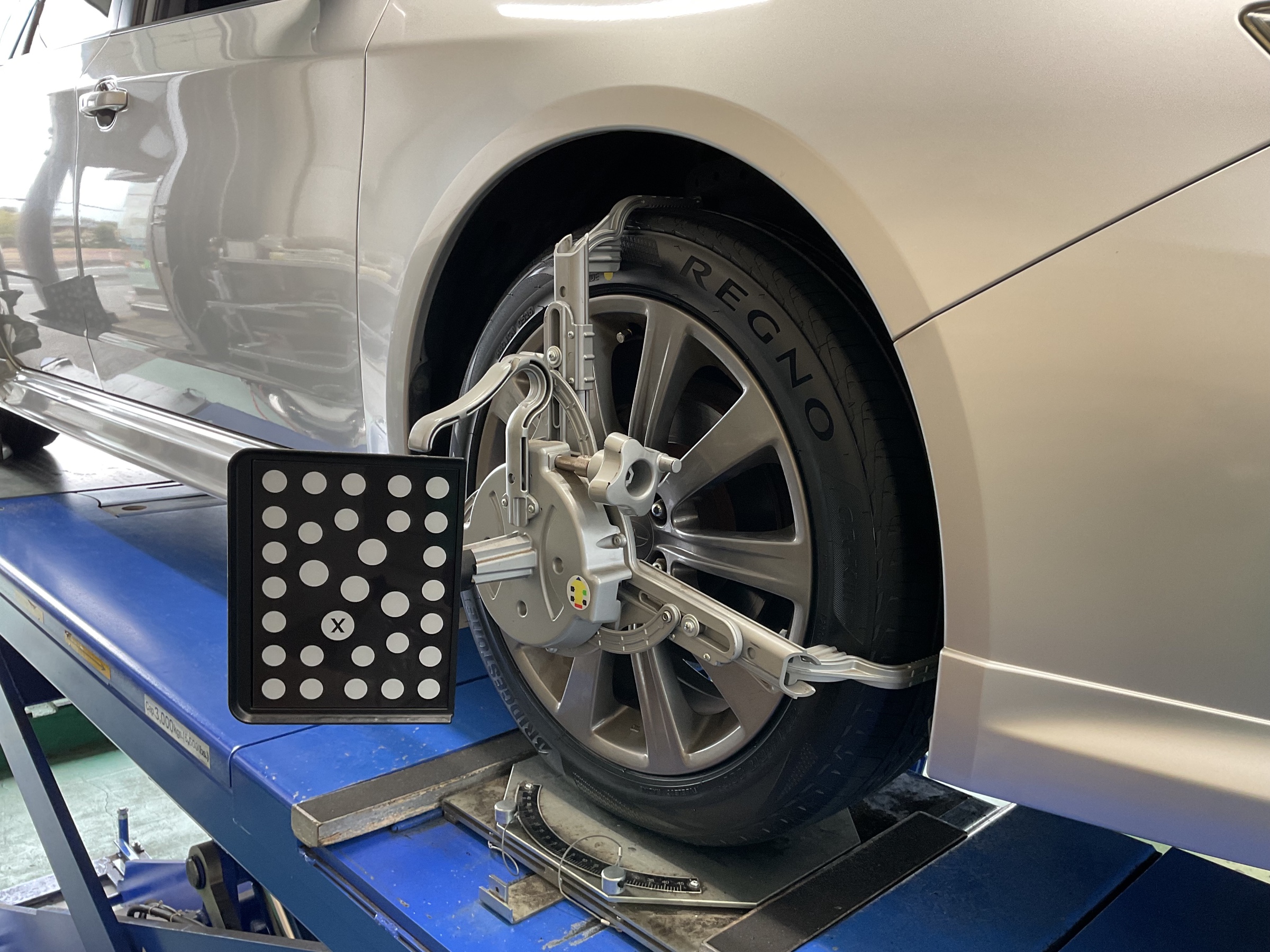 アライメント調整では、お客様のお車に合わせその足廻りの微妙な角度の歪みを調整します。