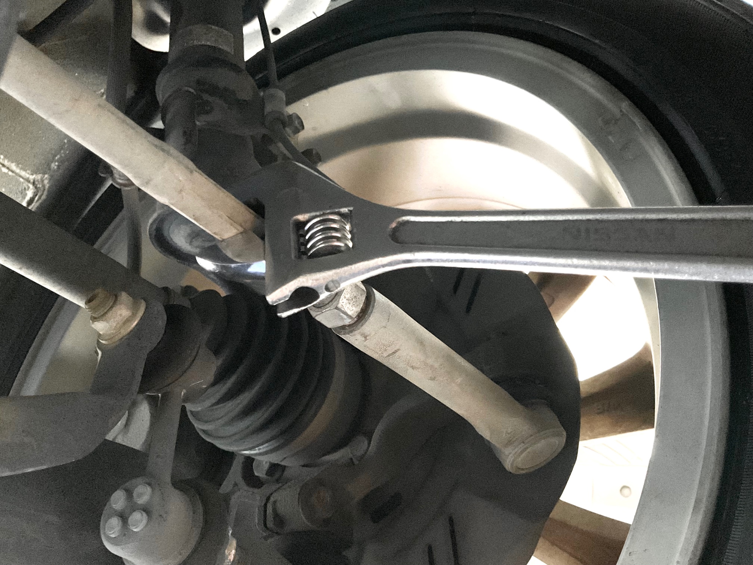今回はお客様とご相談をさせて頂き、前後のトー角度を調整します。