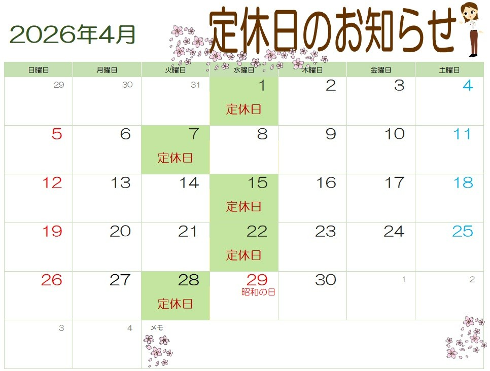 ▶本日は定休日です ポスト 2026年4月15日 日頃より当店をご利用頂き誠にありがとうございます! 本日は定休日になります。 恐れ入りますが、御用の場合は明日以降にご来店ください。 営業時間 :午前の部 10:30~12:45 午後の部 13:30~19:00 (最終作業受付18:30まで) ご迷惑をおかけしますが、ご来店の際は営業日の確認をお願い致します。 カテゴリ:お知らせ