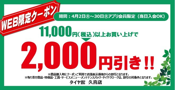 こちらのクーポン券は、タイヤ館 久喜のみ有効となります。