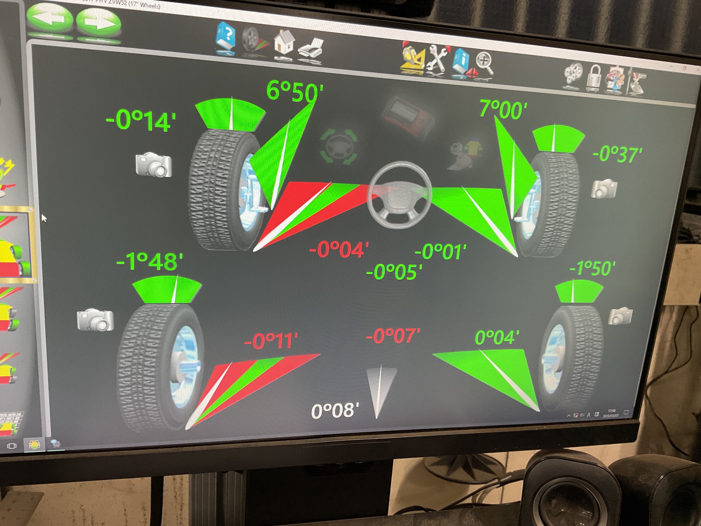 前後のトー角度の数値は左右で同じになりました。