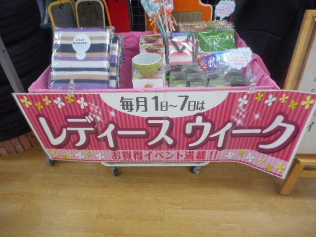 タイヤ館、月初恒例のレディースWEEKですが!今日が最終日ですよぉー(^^)v