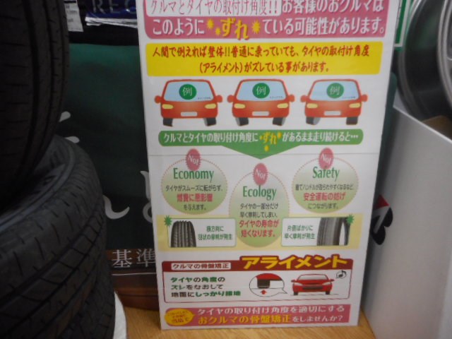 お車もタイヤの取付角度がずれていると、タイヤが変に
