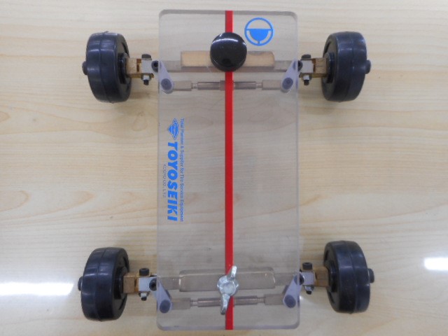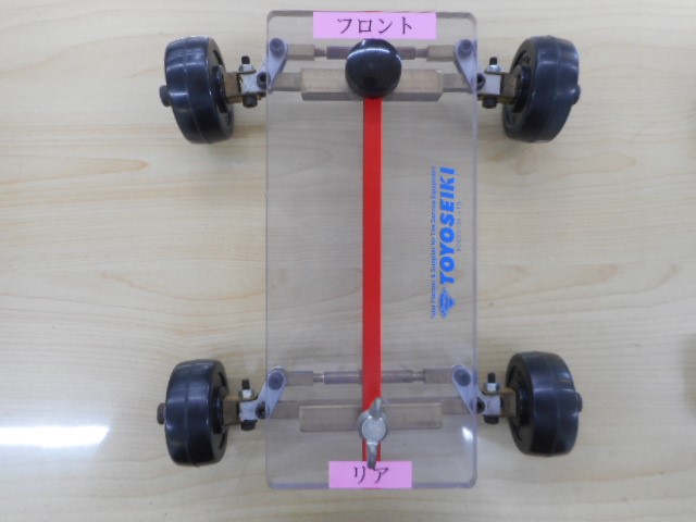 簡単に説明すると、写真の模型ですがフロントのタイヤが外側に開いていると