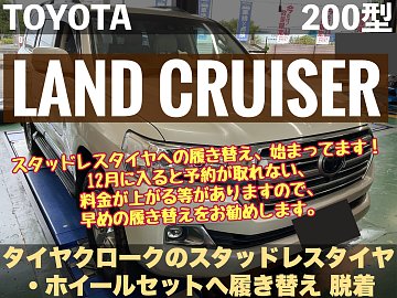 【トヨタ ランドクルーザー 200型】スタッドレスタイヤへの履き替え、始まってます!12月に入ると予約が取れない、料金が上がる等がありますので、早めの履き替えをお勧めします。【タイヤクロークのスタッドレスタイヤ・ホイールセットへ 履き替え 脱着】★久喜市・白岡市・菖蒲・加須市・鷲宮・幸手・蓮田・予約★
