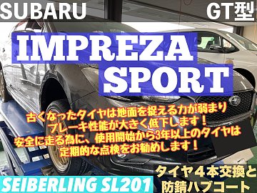【スバル インプレッサスポーツ GT型】古くなったタイヤは地面を捉える力が弱まりブレーキ性能が大きく低下します!安全に走る為に、使用開始から3年以上のタイヤは定期的な点検をお勧めします!セイバーリングSL201【タイヤ4本交換と防錆ハブコート】★久喜市・加須市・白岡市・菖蒲・鷲宮・幸手・蓮田・予約★