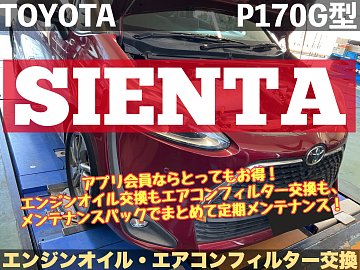 【トヨタ シエンタ P170G型】アプリ会員ならとってもお得!エンジンオイル交換もエアコンフィルター交換も、メンテナンスパックでまとめて定期メンテナンス!【エンジンオイル・エアコンフィルター交換】★久喜市・加須市・白岡市・菖蒲・鷲宮・幸手・蓮田・予約★
