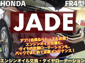 【ホンダ ジェイド FR4型】アプリ会員ならとってもお得!エンジンオイル交換も、タイヤの定期ローテーションも、パックでまとめて定期メンテナンス!【エンジンオイル交換・タイヤローテーション】★久喜市・加須市・白岡市・菖蒲・鷲宮・幸手・蓮田・予約★
