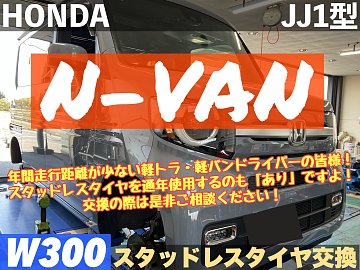 【ホンダ N-VAN JJ1型】年間走行距離が少ない軽トラ・軽バンドライバーの皆様!スタッドレスタイヤを通年使用するのも「あり」ですよ!交換の際は是非ご相談ください! W300【スタッドレスタイヤ交換】★久喜市・白岡市・菖蒲・加須市・鷲宮・幸手・蓮田・予約★