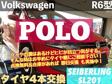【フォルクスワーゲン ポロ 6R型】タイヤの溝はあるけどヒビが目立つ気がする。そんな時はお早めにタイヤ館にご相談下さい!点検無料&在庫があれば 即日交換 も実施中!セイバーリングSL201【タイヤ4本交換】★久喜市・加須市・白岡市・菖蒲・鷲宮・幸手・蓮田・予約★