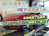 皆さま、こんにちは!こんばんは! ★久喜警察と久喜インターの間にあるタイヤ館久喜です★ いつも当店WEBをご覧いただきありがとうございます! 今回はロードスターのアライメント調整をご紹介します! 足回り部品交換のため、入庫となりました。 みなさんはアライメント作業についてご存知でしょう...