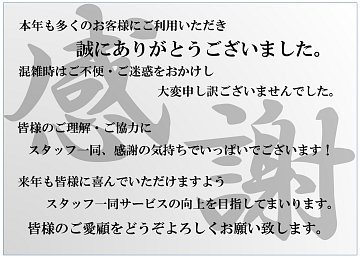 本年も多くのお客様にご利用いただき誠にありがとうございました。