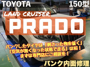 【トヨタ ランクル プラド 150型】パンクしたタイヤは「刺さった物を抜く」「空気が無くなった状態で走る」はNG!まずは専門店にご相談を!【パンク タイヤ 内面修理】★久喜市・白岡市・菖蒲・加須市・鷲宮・幸手・蓮田・予約★