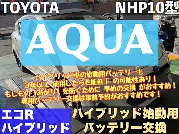 【トヨタ アクア NHP10型】ハイブリッド車の始動用バッテリーも 3年以上 使用したら性能低下 の可能性あり!もしもの「あがり」を防ぐために 早めの交換 がおすすめ!専用バッテリー交換は事前予約がおすすめです!GSユアサ エコアール ハイブリッド【ハイブリッド始動用バッテリー交換】★久喜市・加須市・白岡市・菖蒲・鷲宮・幸手・蓮田・予約★