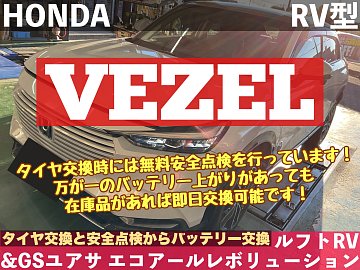 【ホンダ ヴェゼル RV型】タイヤ交換時には無料安全点検を行っています!万が一のバッテリー上がりがあっても在庫品があれば 即日交換 可能です!ルフトRV&GSユアサ エコアールレボリューション【タイヤ交換と安全点検からバッテリー交換】★久喜市・加須市・白岡市・菖蒲・鷲宮・幸手・蓮田・予約★