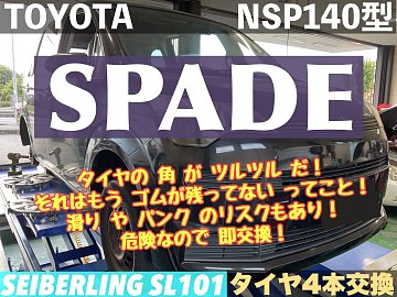【トヨタ スペイド NSP140型】タイヤの 角 が ツルツル だ!それはもう ゴムが残ってない ってこと!滑り や パンク のリスクもあり!危険なので 即交換!SEIBERLING SL101【タイヤ4本交換】★久喜市・加須市・白岡市・菖蒲・鷲宮・幸手・蓮田・予約★