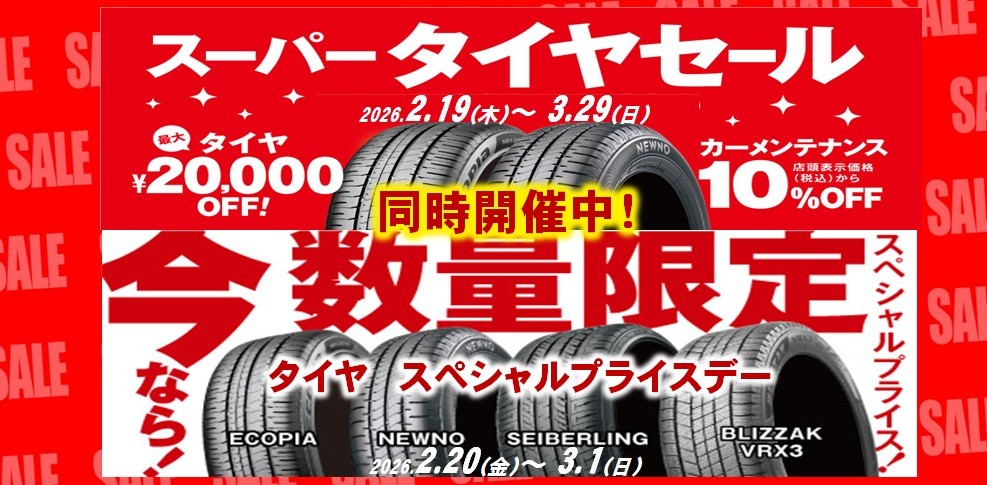 ブリヂストンタイヤをお得に買える!スーパータイヤセール開催!!
