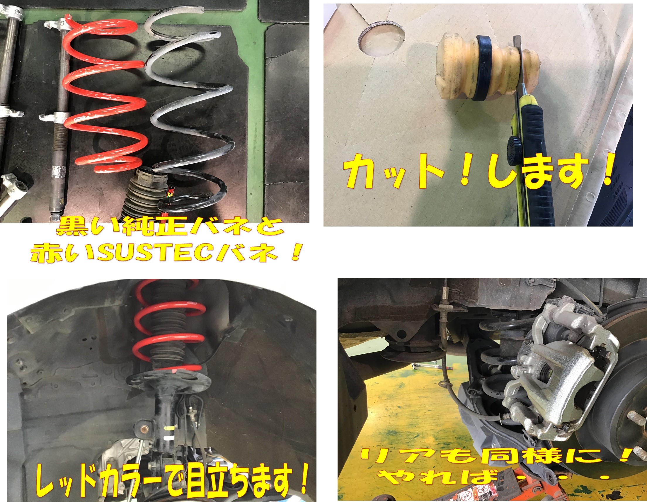 バネ交換パート3 ポスト 2020年6月27日 写真をよく見ると!黒い純正のバネが長いです!!一昔前のミニバンに比べても、かなり長い様に思います。乗り心地が良さそうです。赤いSUSTECのバネ!!目立ってかっこいい!! (๑>◡<๑) 交換した感が、見た目だけでも!!アピール出来そうです。乗り心地も MEDIUMで、ダウン量はSUPER LOWなんて、サイコーです (((o(*゚▽゚*)o))) 関連情報もあわせてご覧ください カテゴリ:その他商品・サービス 担当:細野