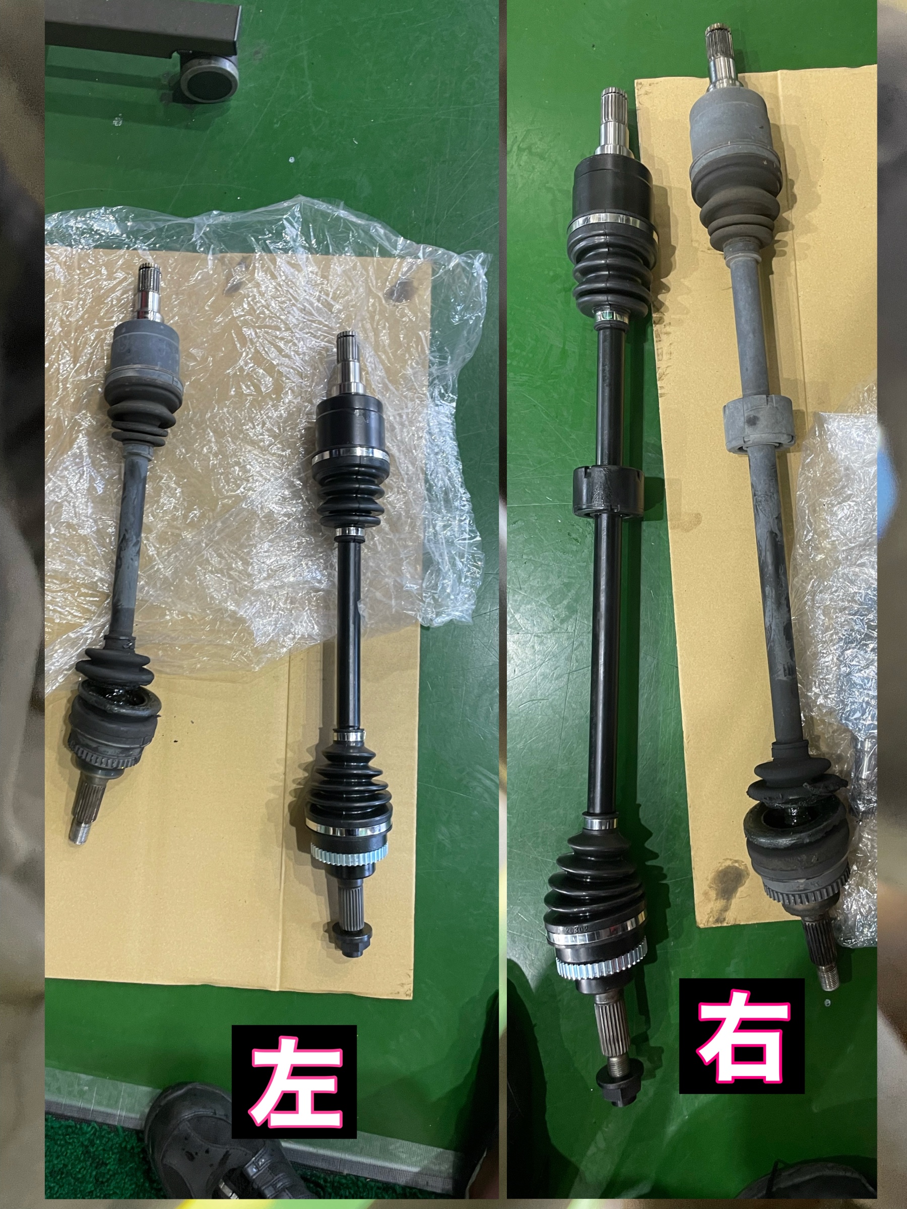 ドライブシャフトはリビルト品に交換します。