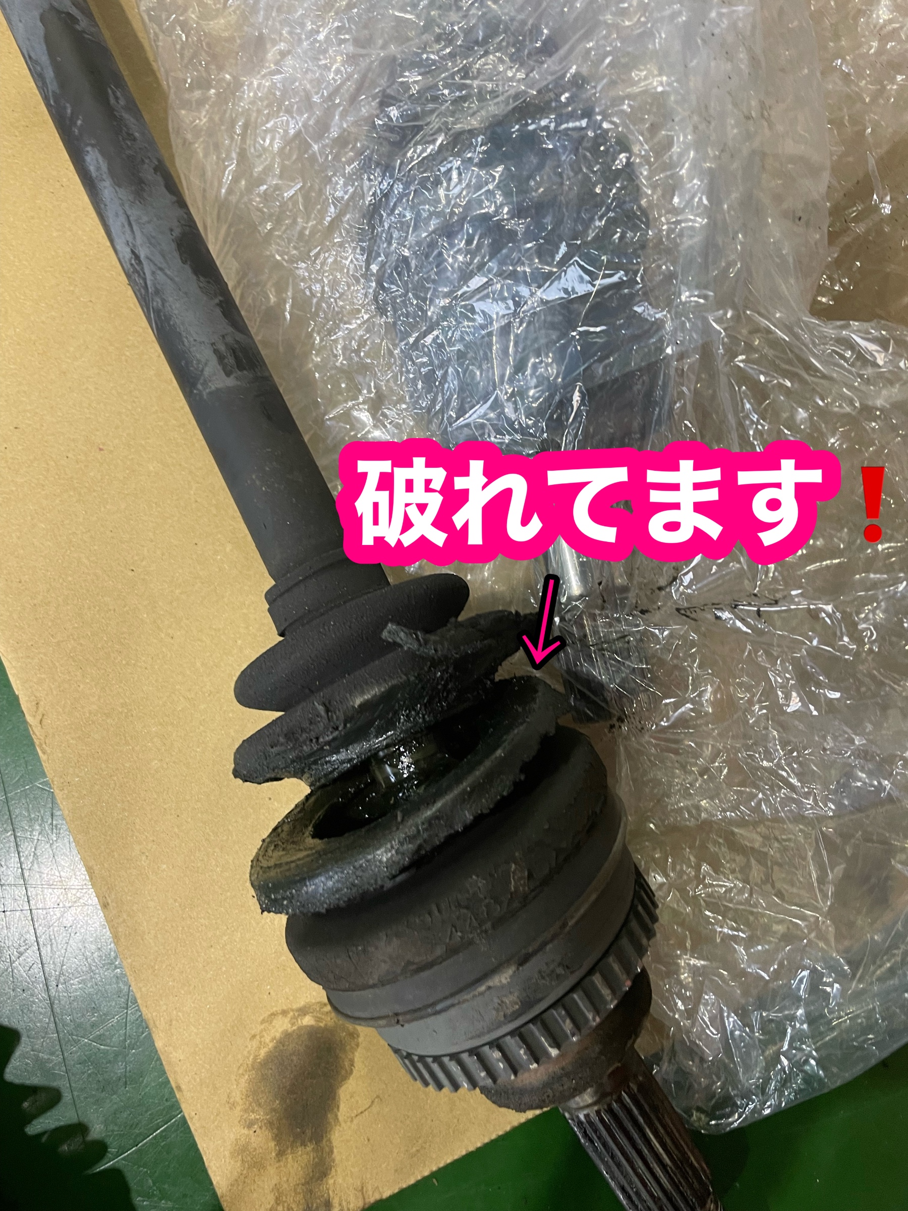 ドライブシャフトブーツは切れると運転中ゴトゴトという音がします。