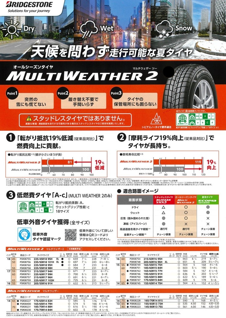 ブリヂストンオールシーズンタイヤ『MULTI WEATHER2』になります!