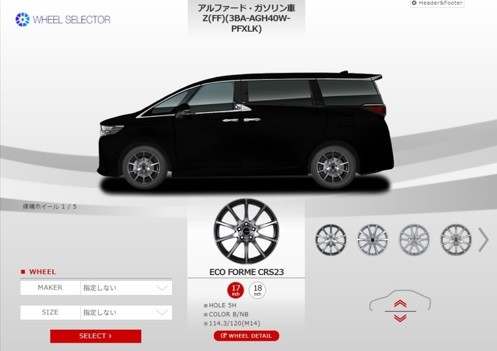WHEEL SELECTOR内の車両画像・商品画像は全てイメージ画像であり、実際の装着を保証するものではございません。