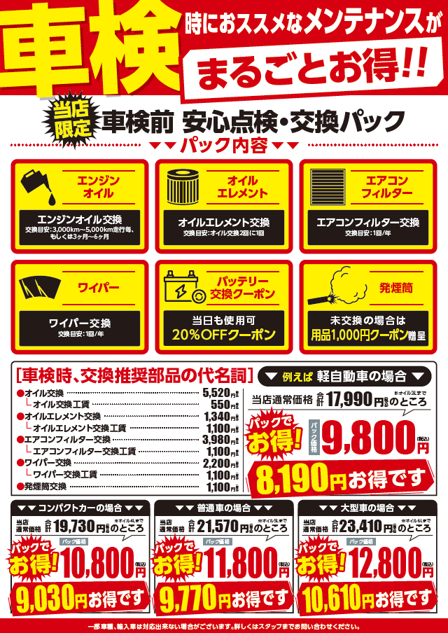 タイヤ館熊谷店限定!車検前パックのご案内!