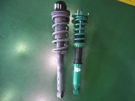 写真は外した純正と社外品(TEIN)です。
