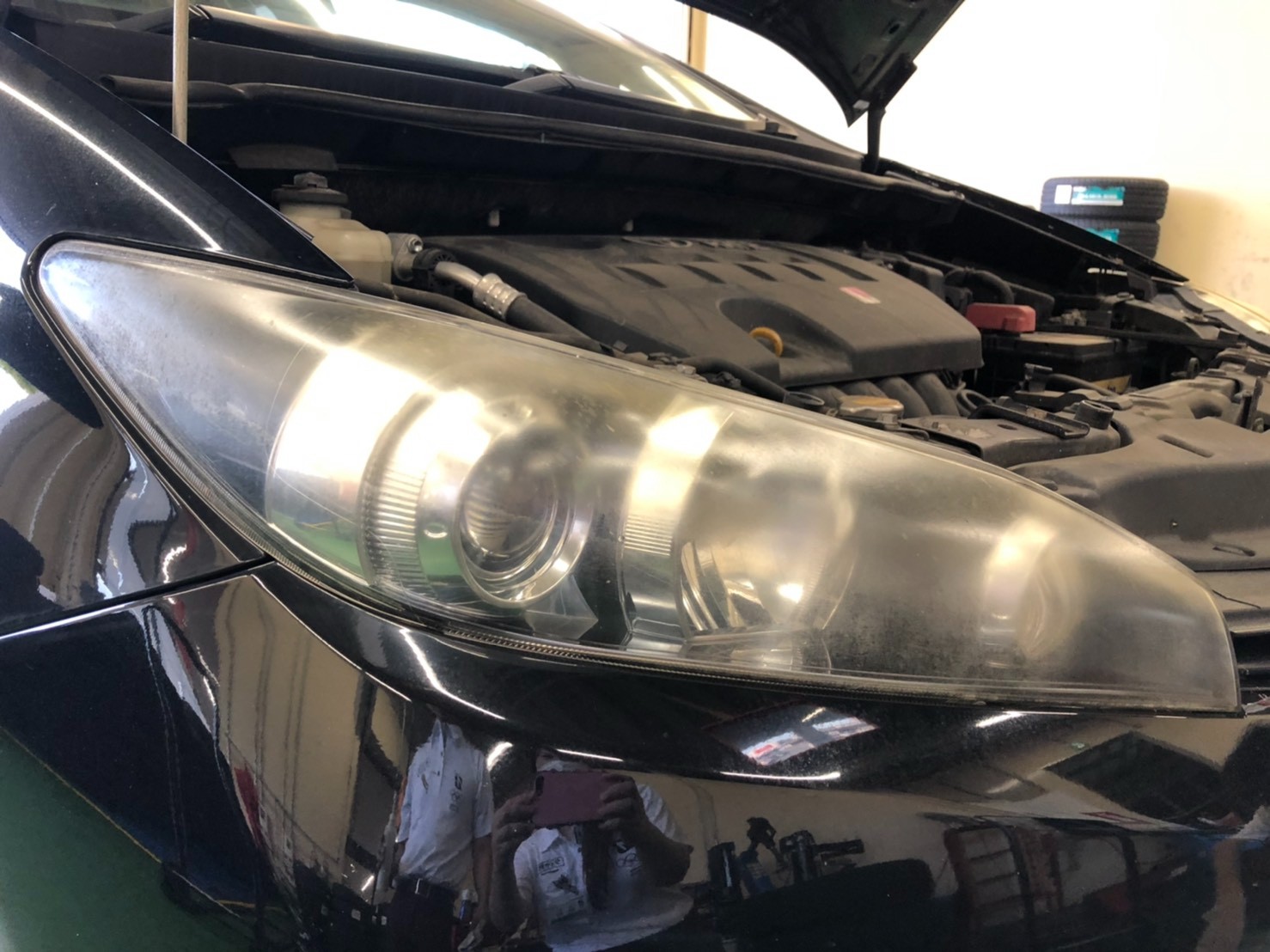 本日はトヨタ・ウィッシュのお客様にヘッドライトコーティングを施工させていただきました。