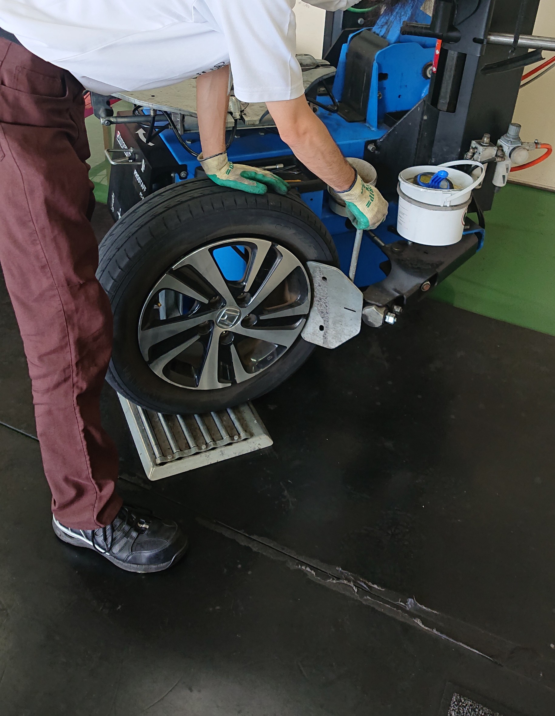 空気圧を指定圧に充填しホイールのバランスをとっていきます!
