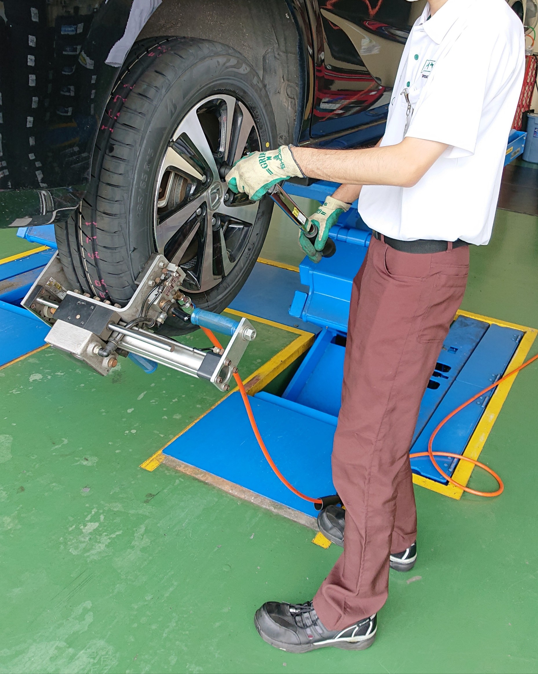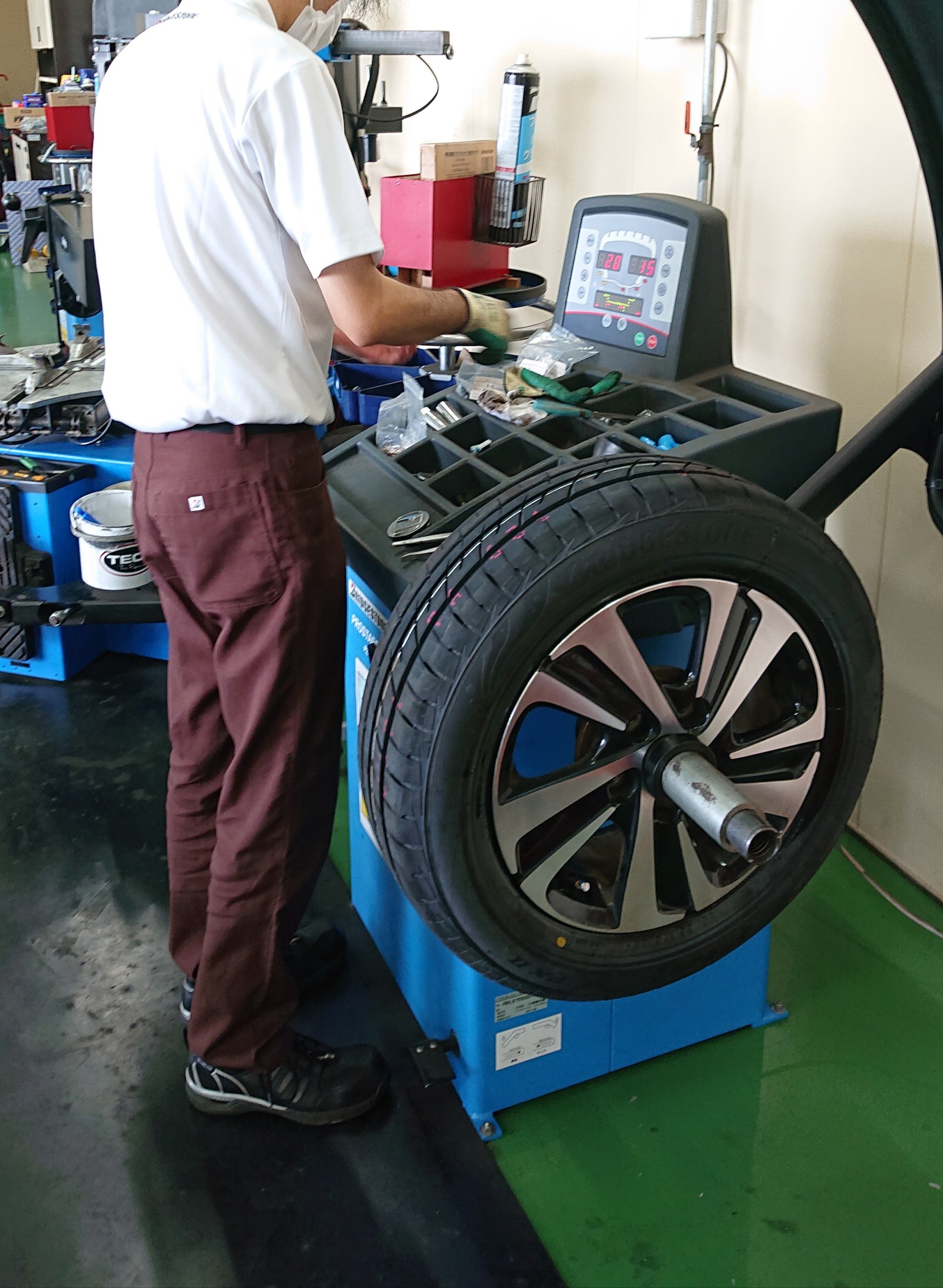 そしてバランスが取れたタイヤをお車に取り付けていきます!