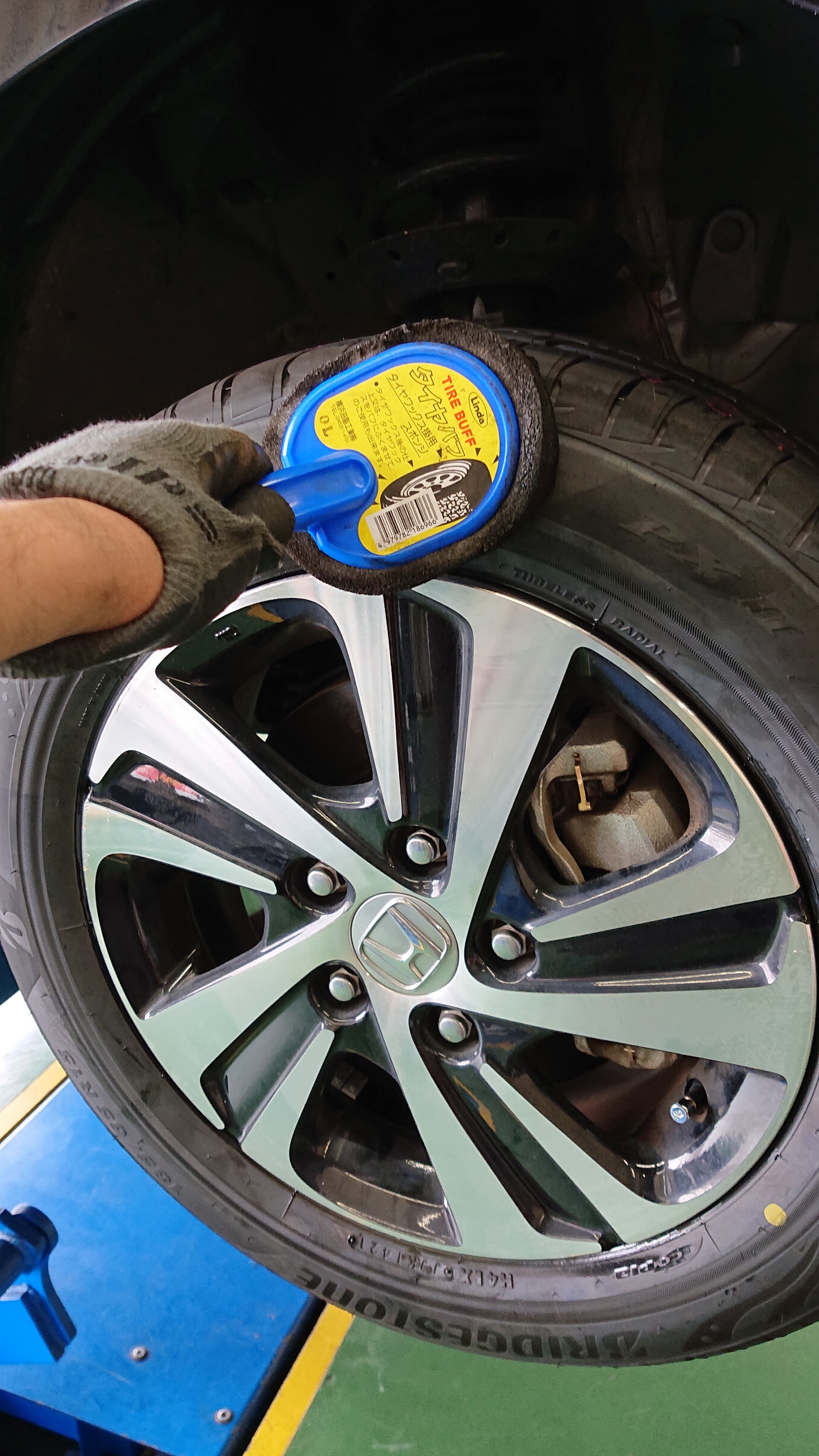 そして装着完了後は仕上げにタイヤワックスを塗っていきます!