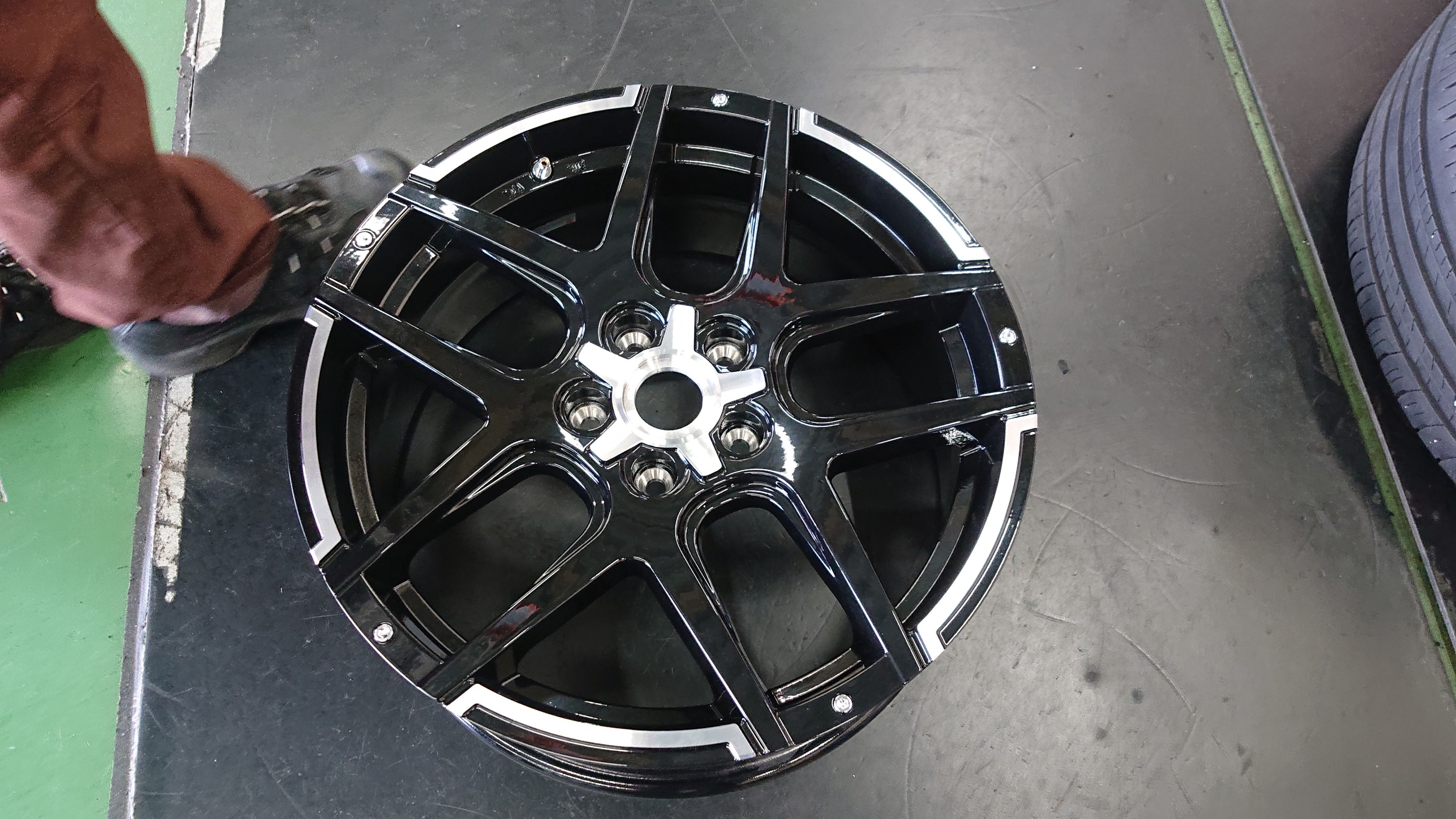 バランス測定したタイヤをお車に取り付けしタイヤワックスで仕上げをし完成です!