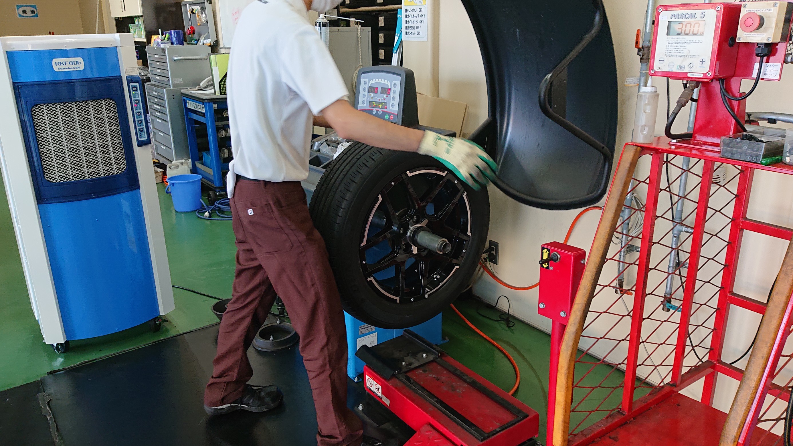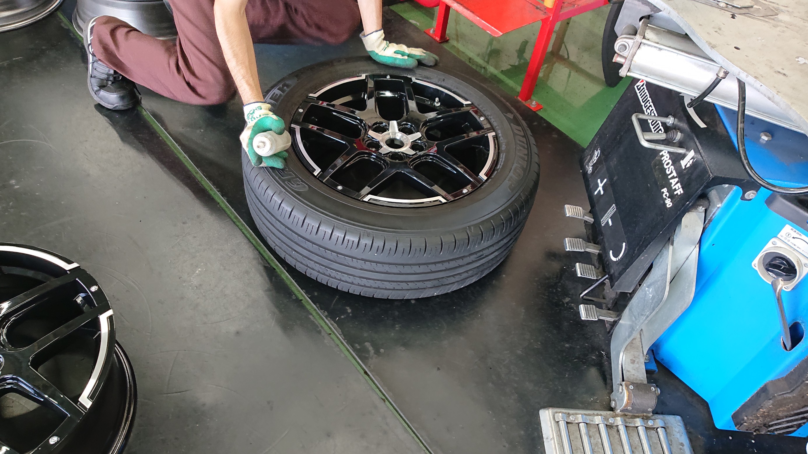 漏れがないかのチェック後ホイールバランスを測定します!
