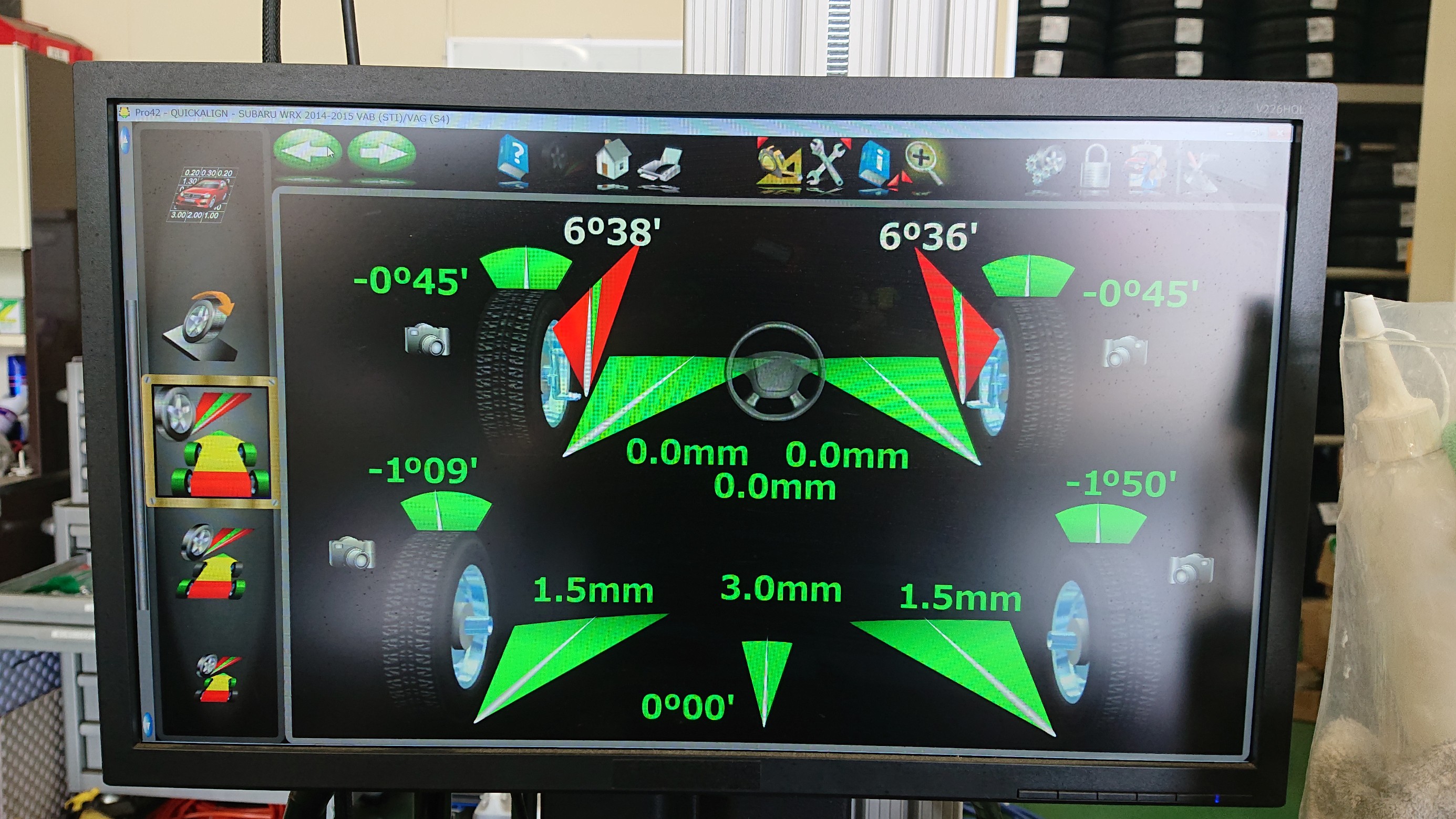 前後ともタイヤの向きをそろえてあげたことでハンドルも取られにくくなり運転もしやすくなります(^^)/