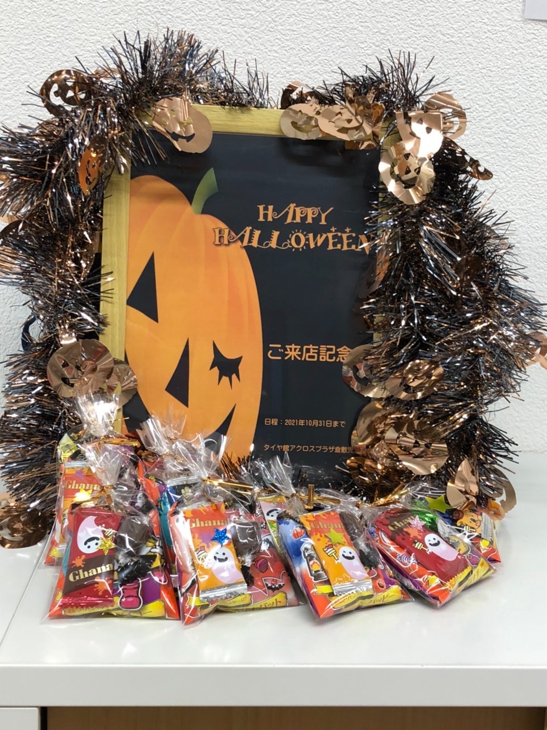 ハロウィン ポスト 2021年10月28日 こんにちは❗ いつもタイヤ館児島店をご利用頂き ありがとうございます❗ 10/31までの期間限定ですが 当店でタイヤお買い上げ並びにその他作業を ご利用のお客様に ハロウィン仕様の粗品をお渡ししております。 数が無くなり次第終了しますので お早めにご利用下さいませ~ スタッフ一同お待ちしております(^o^) カテゴリ:お知らせ