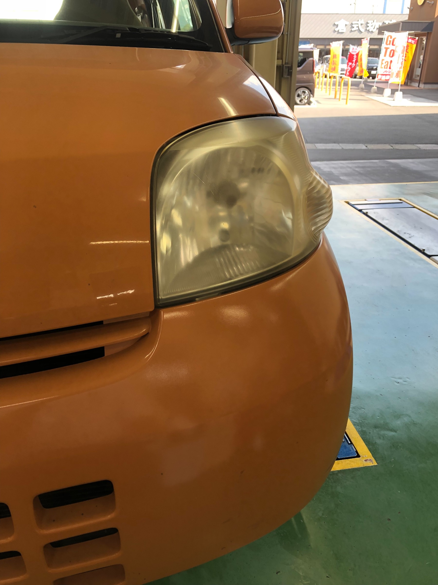 ダイハツのかわいい人気車種のエッセのお客様に今回ヘッドライトコーティングを施工させていただきました!