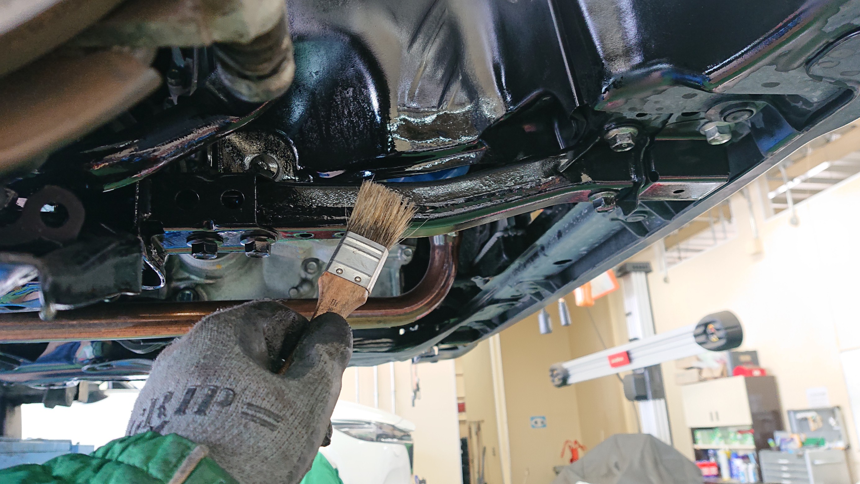 下廻りのさびやすい部分であるマフラーやお車の骨格であるフレーム類などに施工いたします!