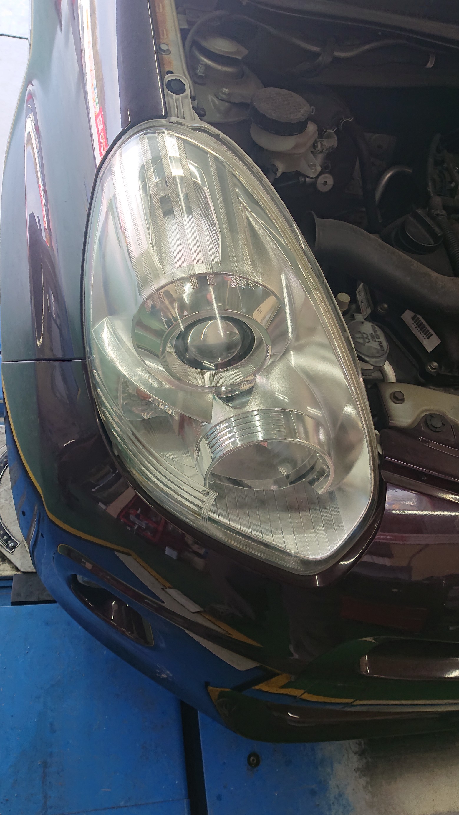 トヨタ・パッソのヘッドライト磨き&コーティングとアライメント調整