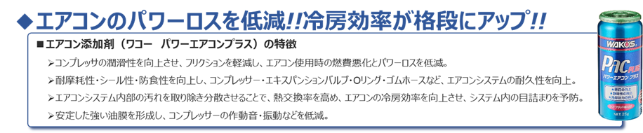 WAKO'S PAC PLUSはコンプレッサーの抵抗を減らすコンプレッサーオイルを配合し