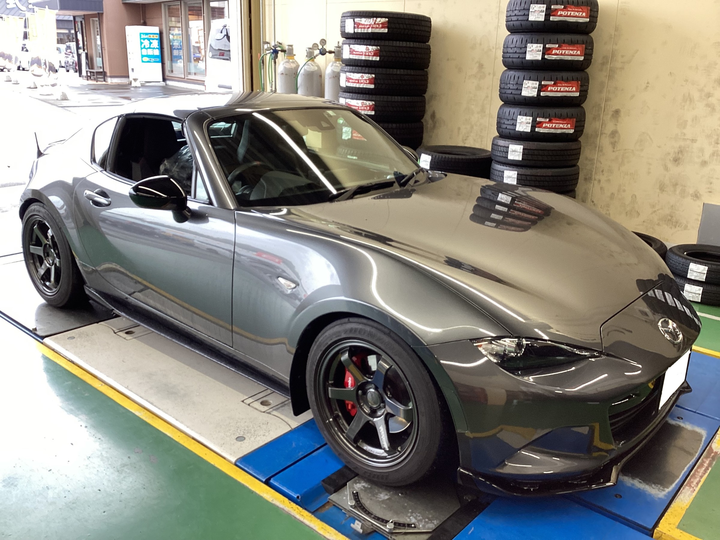 今回MAZDA ロードスターRFのタイヤ交換とアライメント調節を行いました!
