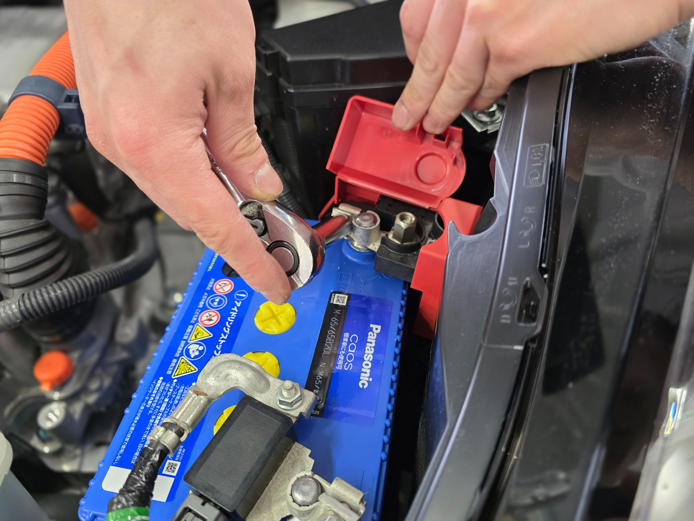 外していく順番はマイナス端子から緩めて...