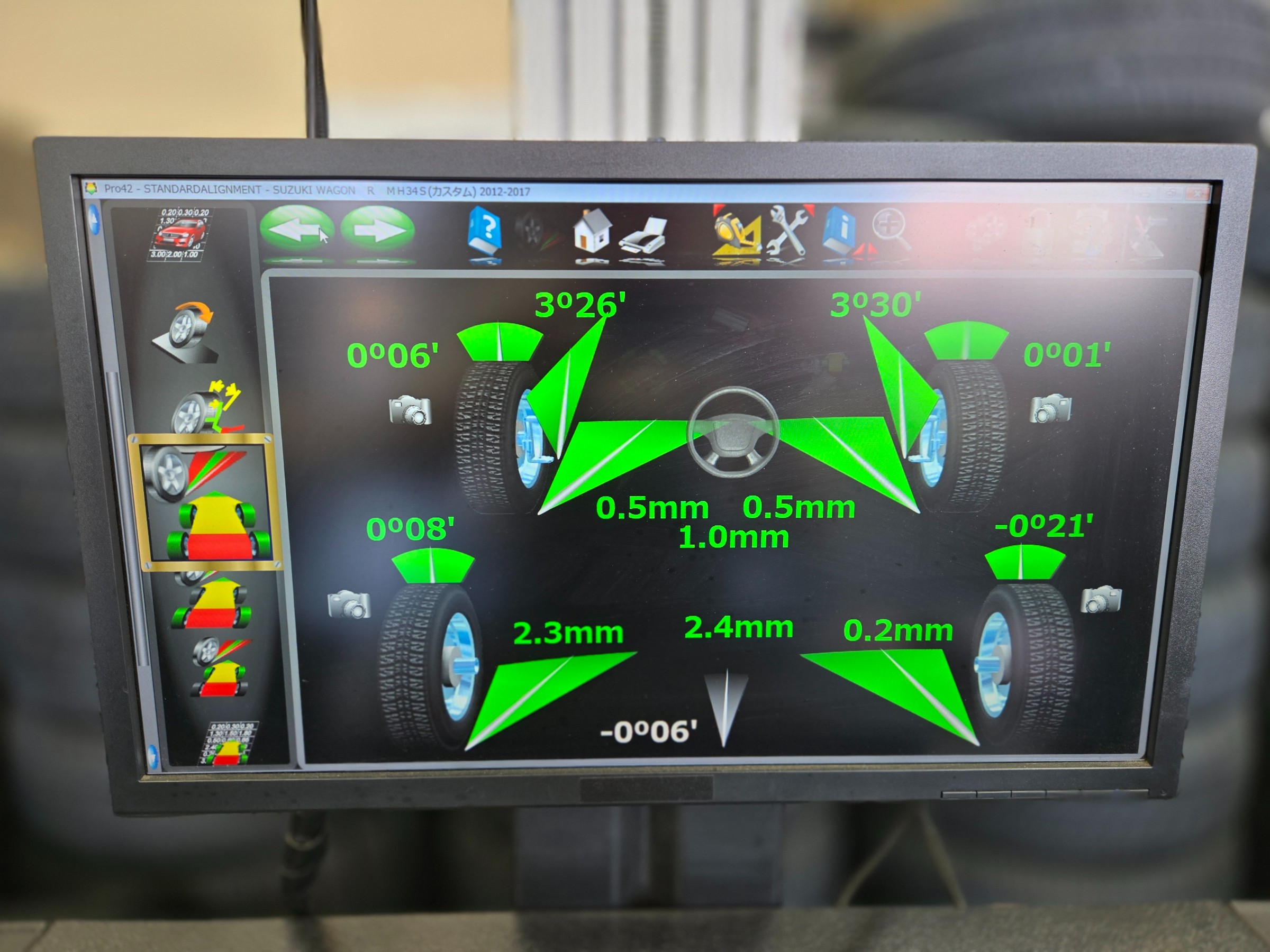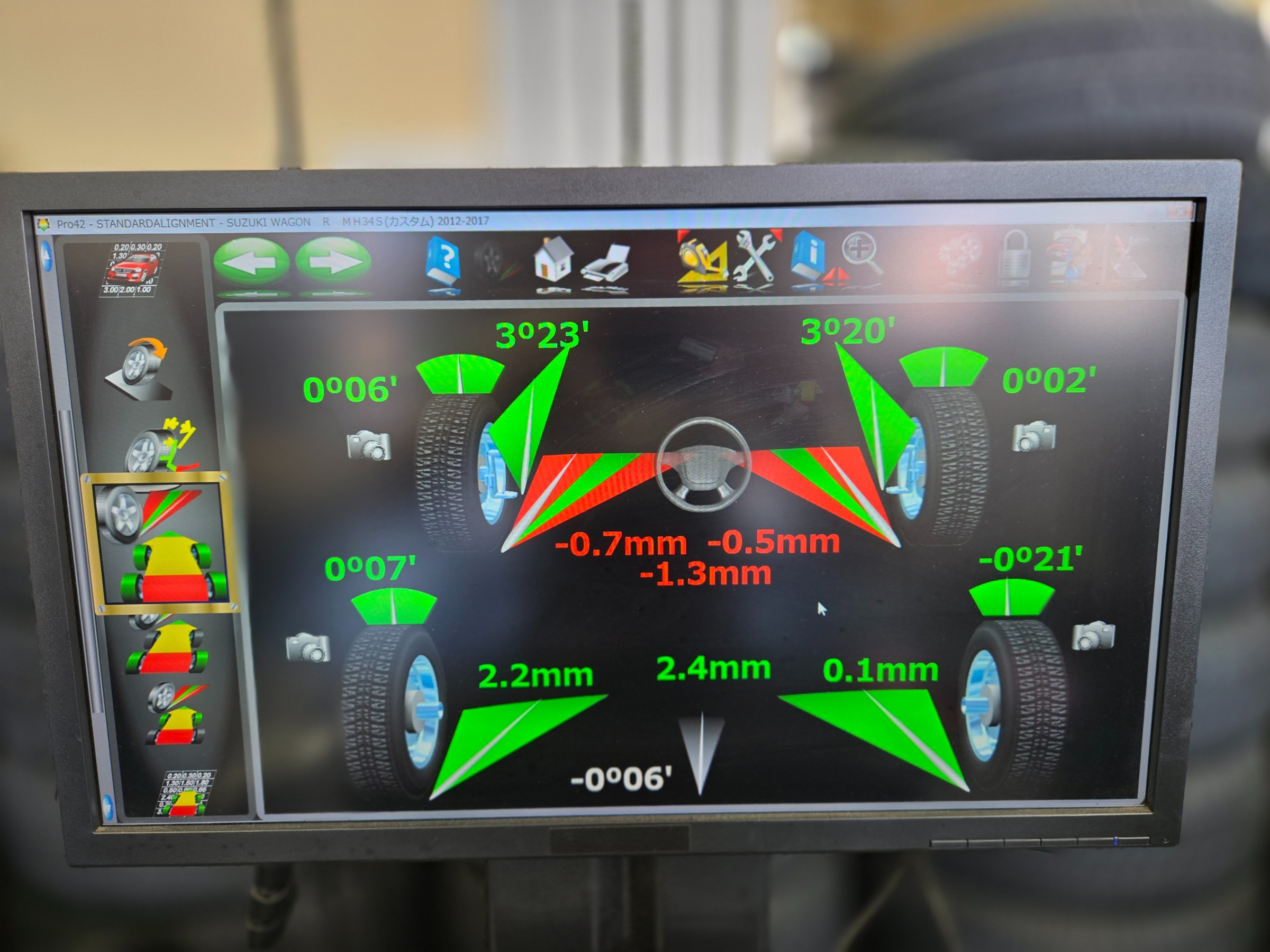 タイヤは今がお得!ワゴンR(MH34S)のタイヤ交換とアライメント!